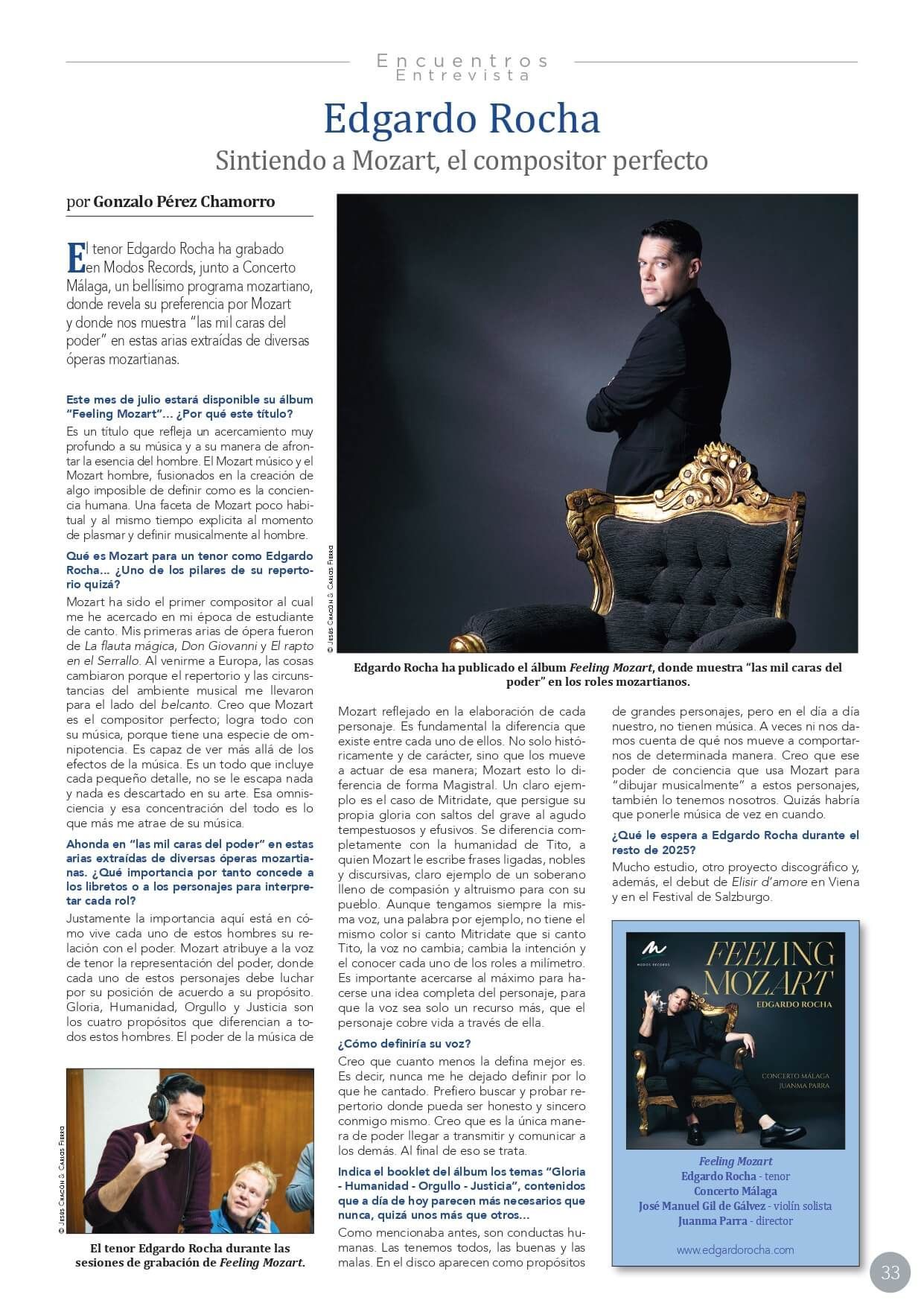 Llega Feeling Mozart, el primer disco de Edgardo Rocha, acompañado por Concerto Málaga bajo la dirección de Juanma Parra. Una interpretación íntima, poderosa y emocional de algunas de las arias más emblemáticas del prodigioso Wolfgang Amadeus Mozart.